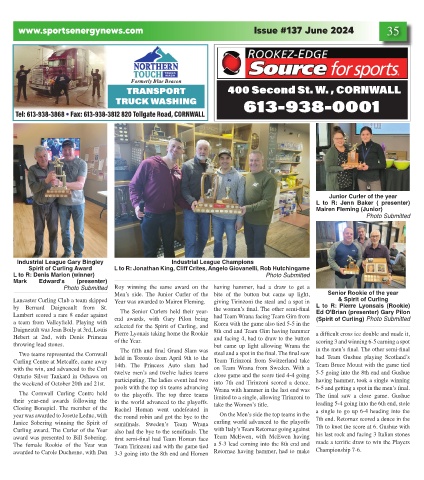 a team from Valleyfield. Playing with end awards, with Gary Pilon being Korea with the game also tied 5-5 in the (Spirit of Curling) Photo Submitted