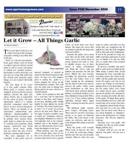 antioxidant, antimicrobial, anti- prior to the first frost. There are a grow ‘scapes’; flowering stems. space. Do not store where there is
