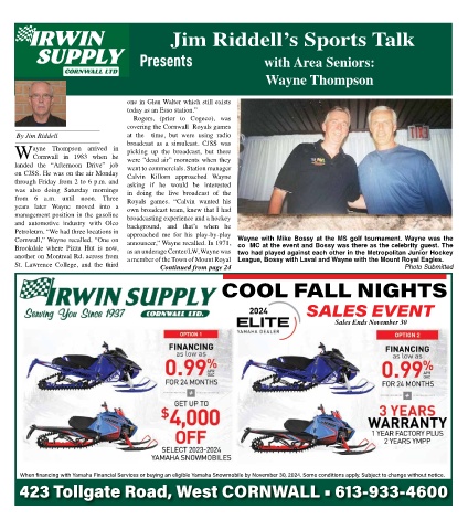 Cornwall,” Wayne recalled. “One on announcer,” Wayne recalled. In 1971, Wayne with Mike Bossy at the MS golf tournament. Wayne was the