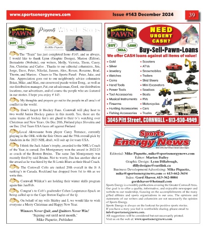again this Jan/Feb. Sports Energy is a monthly publication covering the Greater Cornwall Area.