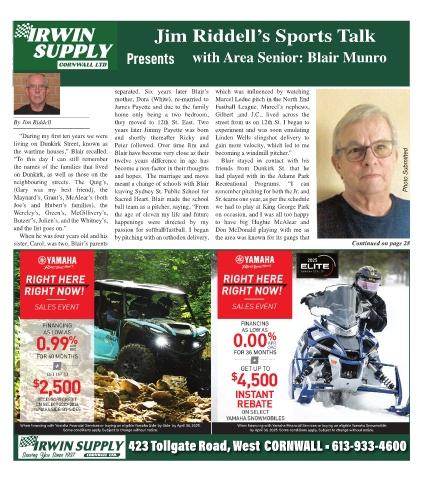 neighbouring streets. The Quig’s, meant a change of schools with Blair Recreational Programs. “I can