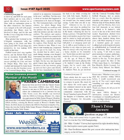 Continued from page 28 entered us in numerous tournaments his back to me while covering his with the Cornwall Township Minor