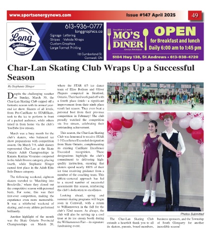 was the Skate Ontario Provincial The Char-Lan Skating Club business sponsors, and the Township
