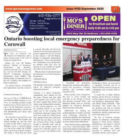 “To protect Ontario, communities • IT upgrades to the mobile command Management, including plan updates, is equipping Cornwall and all of
