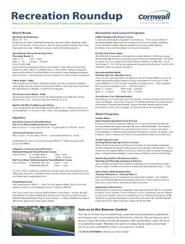 Ages and costs vary. Children must pre-register for each program. For dates, times and fees please visit www.Cornwall.ca.