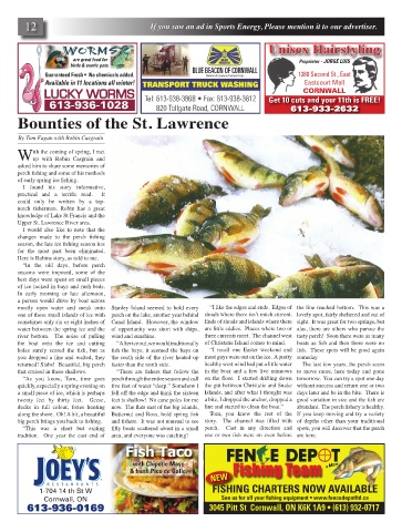 the boat onto the ice and cutting “After ice out, we would traditionally of Christatie Island comes to mind. boats as fish and then there were no