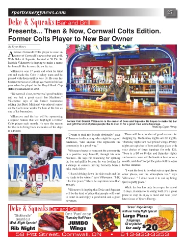 Former Colt Derrick Villeneuve is the owner of Deke and Squeaks. He hopes to make the bar