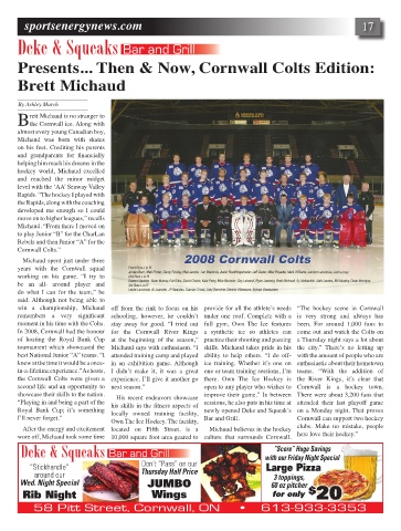 I’ll never forget.” Bar and Grill. Cornwall can support two hockey