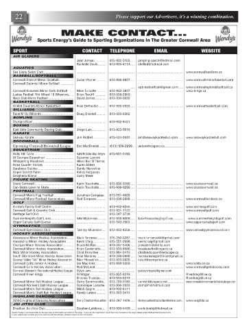 Cornwall Men’s Flag Football .........................Jonathan Campeau ..... 613-551-4605