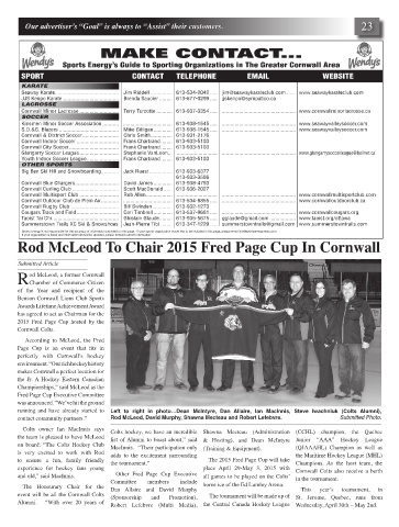 Cornwall & District Soccer ............................Chris Smith ................. 613-931-2176