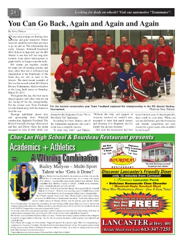 our team to the OFSSA Soccer Championships last spring.” Incidentally, Malyon states Bring this ad in and receive