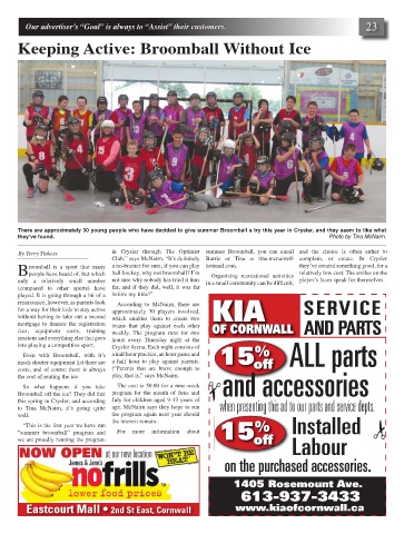 There are approximately 30 young people who have decided to give summer Broomball a try this year in Crysler, and they seem to like what