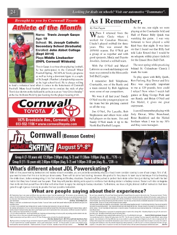 JDL Powerskating Camp is very unique and different than many other ice classes I have had experience with. The instructors are very interested in their Our son, Connor, attended the J-D Lussier Power Skating Camp held in Cornwall Ontario this summer for the very fi rst time. The camp was fantastic! The kids