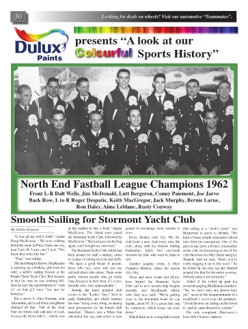 down the shore in Point Claire one day, again, and I bought my own boat.” club, along with the Ontario Sailing guys in my crew, a former commodore
