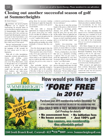 1160 South Branch Road, Cornwall • 613 • 938 • 8009 • www. Summerheightsgolf.com
