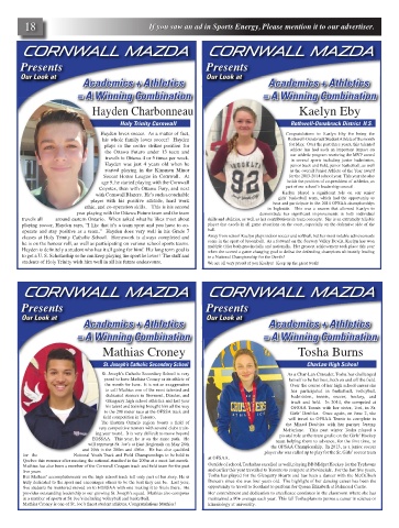 playing soccer, Hayden says, “I like that it’s a team sport and you have to co- player that excels in all game situations on the court, especially on the defensive side of the