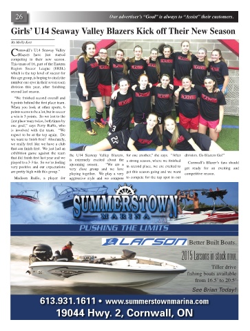 exhibition game against the team the U14 Seaway Valley Blazers, for one another,” she says. “After division. Go Blazers Go!”