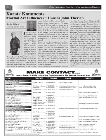 Mike’s Karate Club ........................................Mike Bissonnette ........ 613-932-9054 ....... mikes_karate@cogeco.ca .......... www.mikescontactkarate.ca