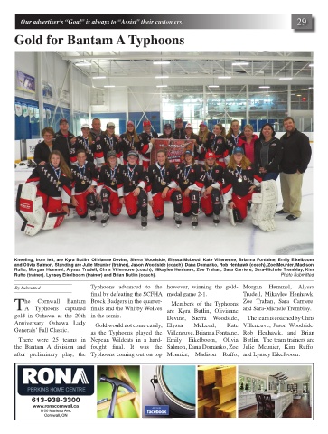 he Cornwall Bantam Brock Badgers in the quarter- Zoe Trahan, Sara Carriere,