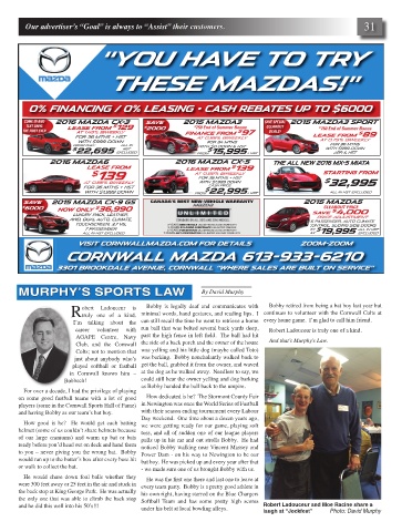 R obert Ladouceur is minimal words, hand gestures, and reading lips. I continues to volunteer with the Cornwall Colts at