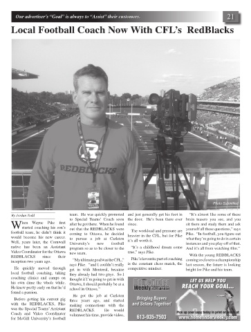 Video Coordinator for the Ottawa new team. true,” says Pike.