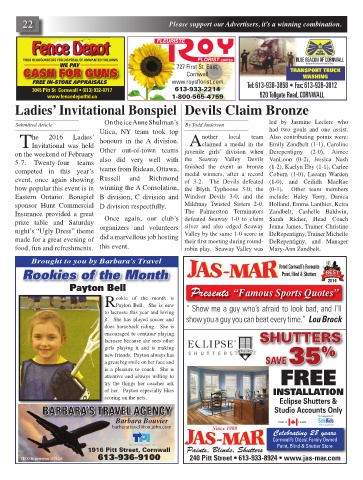 5-7. Twenty-four teams also did very well with the Seaway Valley Devils VanLoon (0-2), Jessica Nash
