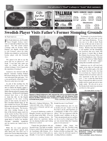 stormed back from a 2-0 deficit Sweden’s Noah Andersson, left, enjoyed his visit to Cornwall area with
