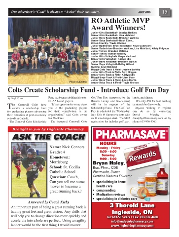 The Cornwall Colts Scholarship The inaugural Cornwall Colts registration fee includes golf, cart, phone 613-930-9300.