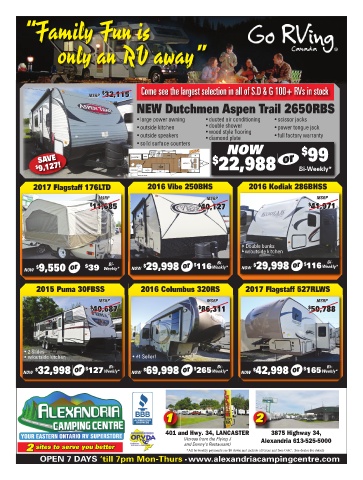 OPEN 7 DAYS ‘till 7pm Mon-Thurs • www.alexandriacampingcentre.com