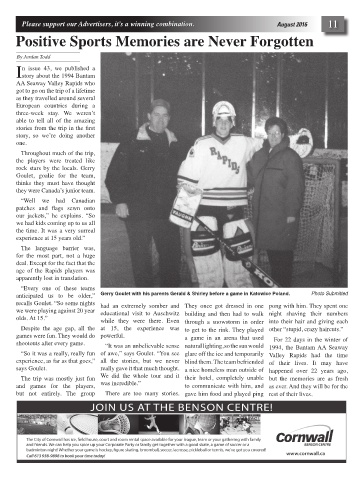 anticipated us to be older,” Gerry Goulet with his parents Gerald & Shirley before a game in Katowice Poland. Photo Submitted