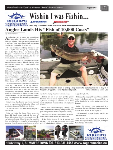 and (a fish) hit seconds after my lure hit the water. Shawn Little realized his dream of landing a large musky after capturing this one on July 13 in
