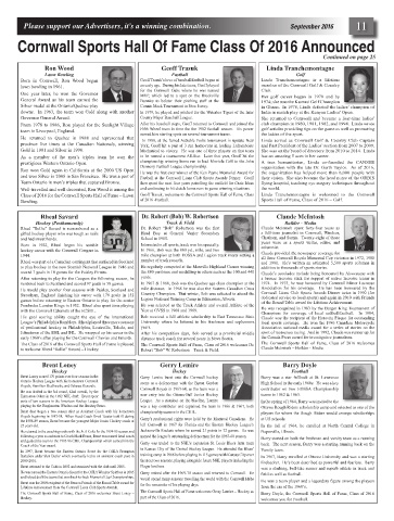 The Class of 2016 of the Cornwall Sports Hall of Fame is pleased The Cornwall Sports Hall of Fame, Class of 2016 welcomes Dr. The Cornwall Sports Hall of Fame, Class of 2016 welcomes