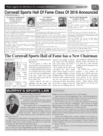pleased to welcome Juanita Courville (posthumously) as a Cornwall for his commitments to minor sports and is now a Dave Cruickshank is part of the Cornwall Sports Hall of