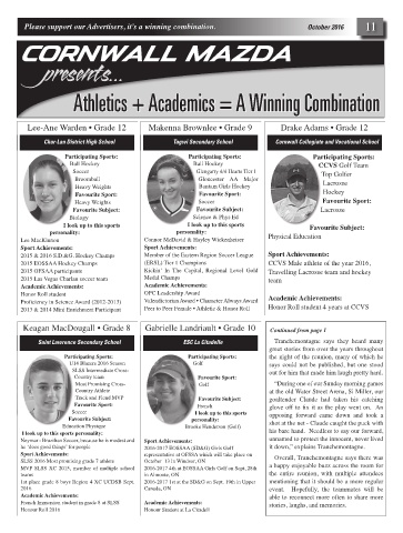 Keagan MacDougall • Grade 8 Gabrielle Landriault • Grade 10 Continued from page 1