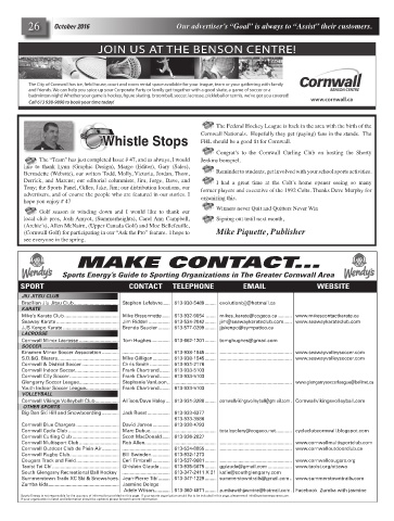 Cornwall & District Soccer ..............................Chris Smith ..................613-931-2176