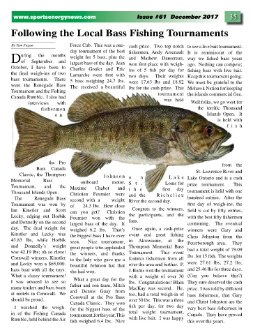 Cornwall winners, Kinstler to the lady who gave me a features fishermen from all lbs. for 15 fish. The weights