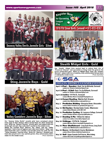 Our “Seaway Valley Devils” juvenile girls’ team out-played almost May 24 Cribbage • 119 Pitt St., Cornwall