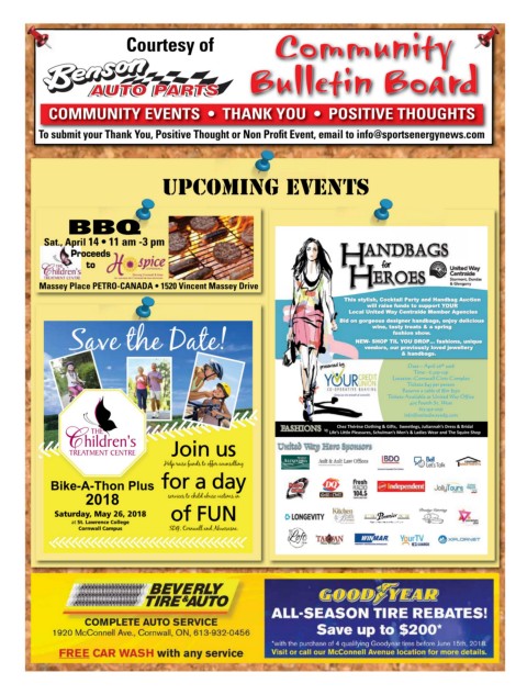 To submit your Thank You, Positive Thought or Non Profit Event, email to info@sportsenergynews.com