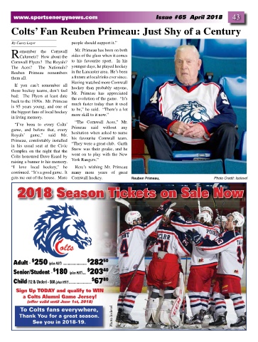 gets me out of the house. More Cornwall hockey. Reuben Primeau, Photo Credit: Icelevel
