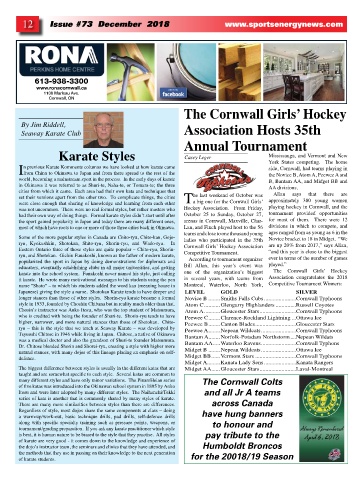 ryu, Kyokushkin, Shotokan, Shito-ryu, Shorin-ryu, and Wado-ryu. In Cornwall Girls’ Hockey Association are up 20% from 2017,” says Allan,