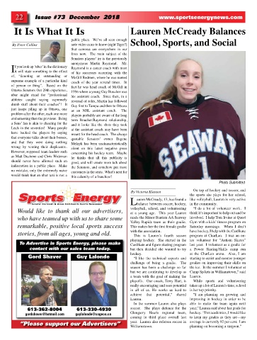 22 Issue #73 December 2018 www.sportsenergynews.com