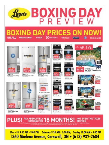 Mon - Fri 9:30 AM - 9:00 PM; Saturday 9:30 AM - 6:00 PM; Sunday 11:00 AM - 5:00 PM 1360 Marleau Avenue, Cornwall, ON • (613) 932-2684