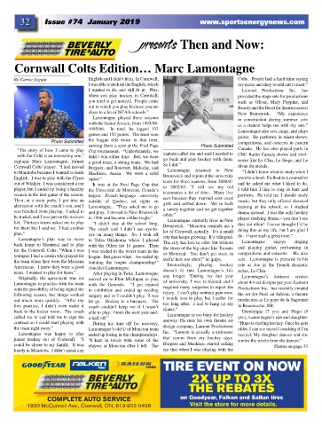 the team when they were the Massena winning the league championship!” traffic here too often!” he quips. acts. Lamontagne is pictured in his