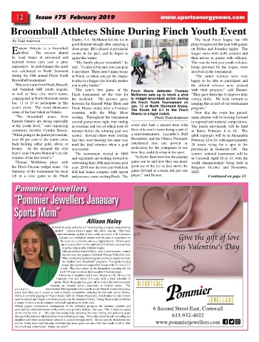 committee member Cynthia Daoust. minutes before the winning goal was three elite men’s teams being a part of in Barrie February 8 to 10. The