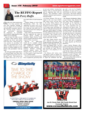 at Cornwall Spine Care Plus+ have are always quick to report about team • The Falcons girls’ hockey team and Ruffo with 878 pts. For the fourth