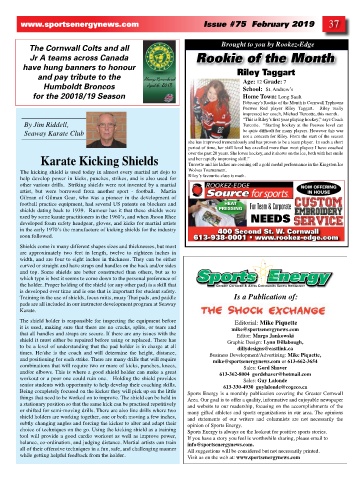 the holder. Proper holding of the shield (or any other pad) is a skill that Greater Cornwall & Areas Community Sports Newspaper