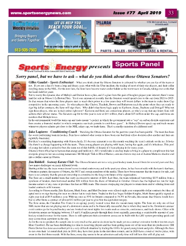 Jim Riddell - Seaway Karate Club- The Ottawa Senators are not a very good hockey team, haven’t been for several years and they