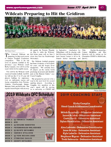 he Cornwall Wildcats are first home game will on June 8 the University of Ottawa; defensive Sabourin will be suiting up for