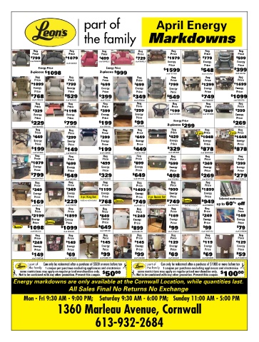 Energy markdowns are only available at the Cornwall Location, while quantities last.