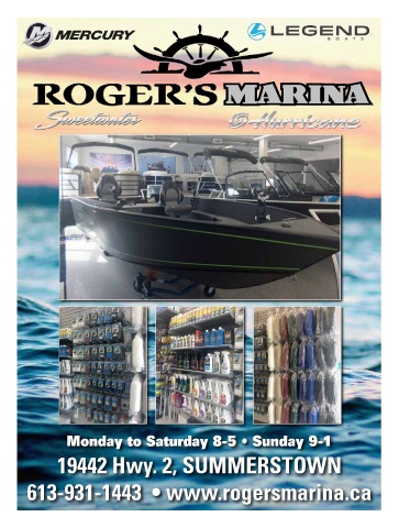 Monday to Saturday 8-5 • Sunday 9-1 19442 Hwy. 2, SUMMERSTOWN 613-931-1443 • www.rogersmarina.ca